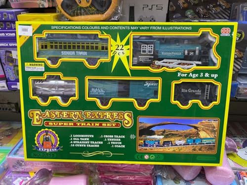 Generic - مجموعة قطار ايسترن اكسبريس من 22 قطعة تتضمن قاطرة + عربات + مسار مصباح امامي واقعي ونفاثات دخانية، مقصورات قطار سهلة التجميع والفصل