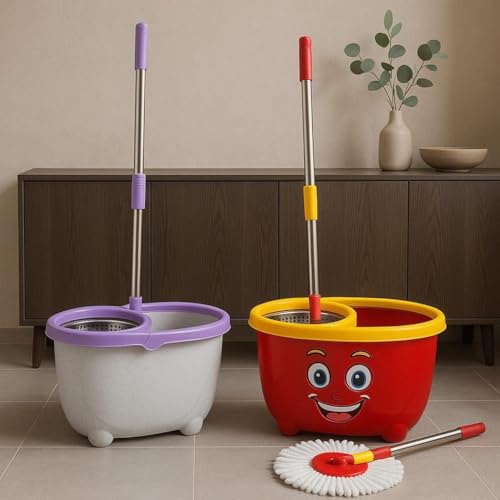 Generic - مجموعة مساحة موب/شرشوبة دوارة سهلة وسريعة التنظيف التلقائي مع جردل تنظيف، لون أحمر وأبيض، عصا من الستانلس ستيل، تصميم مبتكر للتنظيف المنزلي