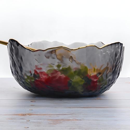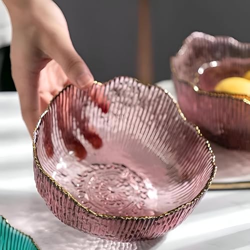 Generic - طبق زجاج سهل التنظيف، وعاء زجاجي شفاف متوسط لسهولة التنظيف؛ لتخزين الخضروات والفواكه والسلطات والحلويات، بألوان باستيل عشوائية تضيء أي مطبخ، امن للغسل في غسالة الأطباق، لون بورجندي