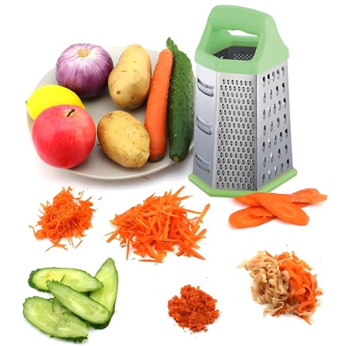 Generic - بشر سهل - باستخدام مبشرة سداسية من الفولاذ المقاوم للصدأ مثالية للجبن والثوم والزنجبيل والليمون والشوكولاتة والخضروات والفواكه - مبشرة طعام متعددة الاستخدامات لجميع احتياجاتك الطهوية (اخضر)