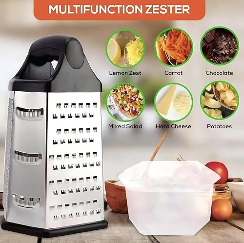- حاوية تخزين قابلة للفصل: أطلق العنان لبراعتك في الطهي باستخدام مبشرة يدوية من الفولاذ المقاوم للصدأ سداسية الجوانب تأتي مع حاوية تخزين قابلة للفصل. تحافظ هذه الميزة المبتكرة على مطبخك خاليًا من الفوضى مع ضمان التقاط كل لقمة وتخزينها بشكل صحيح، مما يجعل عملية الطهي أكثر كفاءة.