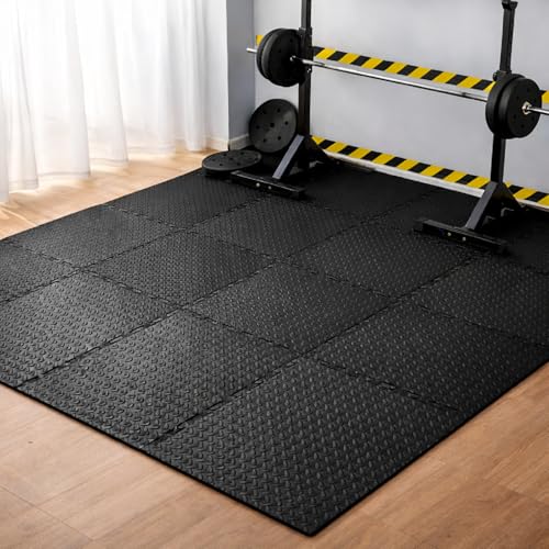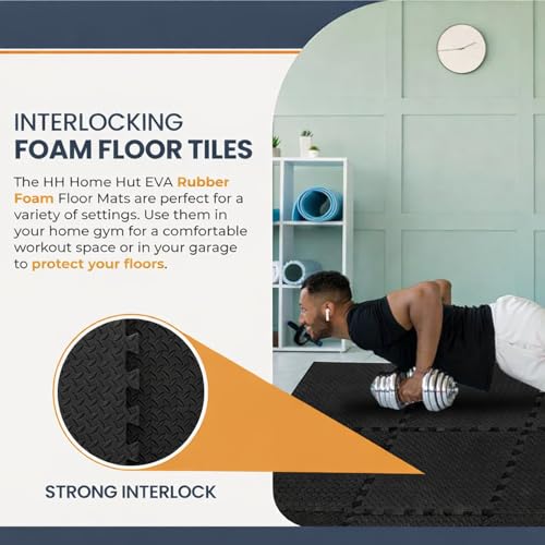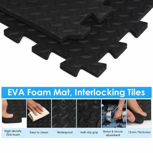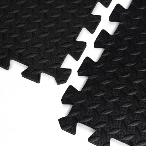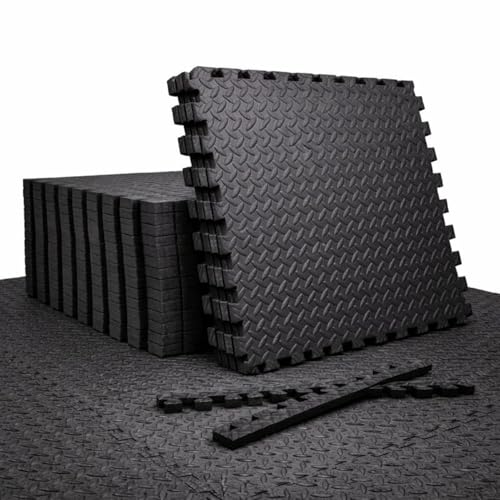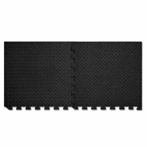 EASY HOME - سجادة أرضية مطاطية متشابكة من فوم إيفا فائق الامتصاص للجيم وغرفة المعيشة من ايزي هوم، مقاس 60×60 سم وسمك 11 ملم عبوة من 4 قطع بمقاس 0.37 إلى 1.49 م2، لون أسود