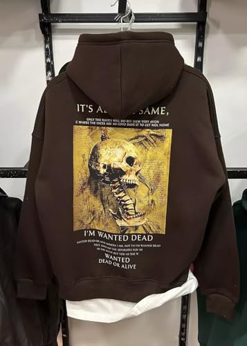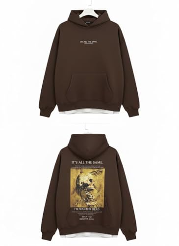 Generic - سويت شيرت بغطاء راس كبير الحجم للجنسين بتصميم جمجمة من ايزي بيزي، مصنوع من قطن عالي الجودة، سويت شيرت بقصة فضفاضة بلون بني، بلوفر كبير الحجم، مقاسات M الى 2XL