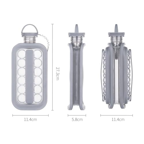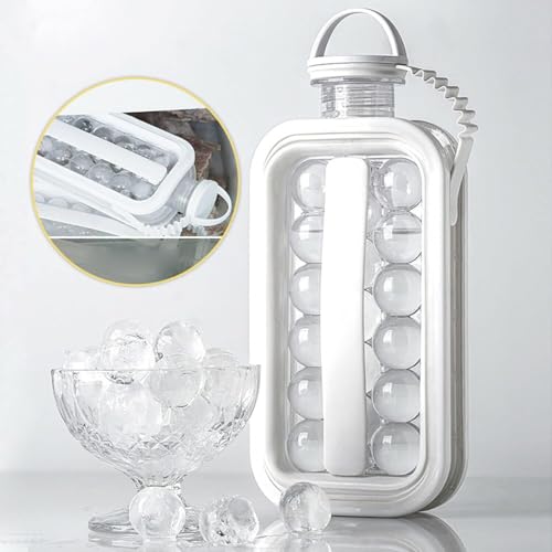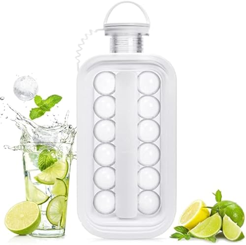 Spaceshoop - ماكينة صنع كرات الثلج سهلة الحمل والنقل، صواني مكعبات الثلج للفريزر، زجاجة مياه محمولة 2 في 1 بتصميم كرة الثلج