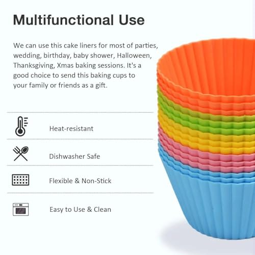 - 🧁 مرونة فائقة وسهولة في الاستخدام يتميّز القالب بخامة سيليكون مرنة للغاية تُسهل عملية فك الكب كيك من القالب دون أي كسر أو التصاق، لتبقى كل قطعة محتفظة بشكلها المثالي وجمالها المتناسق. لا حاجة بعد اليوم إلى دهن القالب بالزبدة أو الزيت، فالقالب يفصل الكيك بسهولة مذهلة وكأنك تستخدمين أدوات احترافية.