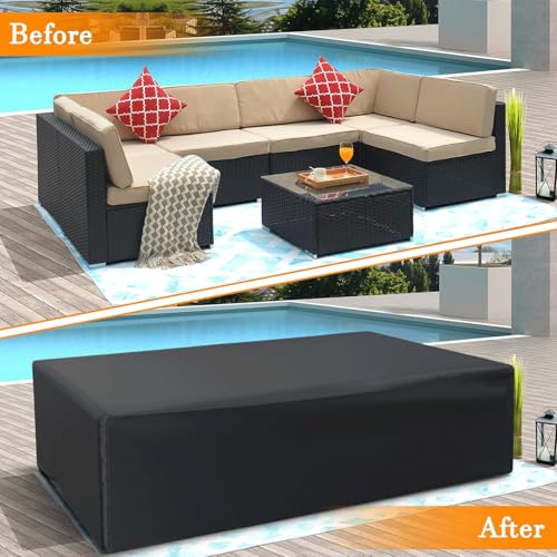 - الأبعاد: يبلغ مقاس غطاء الأثاث المستطيل 3.2 م طول × 2 م عرض × 57.9 سم ارتفاع، مما يناسب مجموعة الأثاث المقسم الخارجي وطاولة الفناء المستطيلة ومجموعة الكراسي. يرجى قياس حجم الأثاث الخاص بك قبل الشراء. يُقترح اختيار الغطاء أكبر بمقدار 2.5-20.3 سم من مقاس أثاثك.