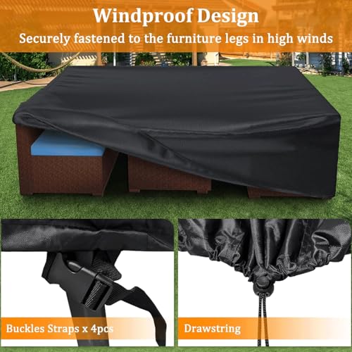 EASYBUYTECH - مجموعة غطاء أثاث الفناء متين 420D للطاولة والكراسي مقسم ومقاوم للماء بتصميم مستطيل للاستخدام الخارجي من ايزي باي تيك، مقاس 325 × 208 × 58 سم