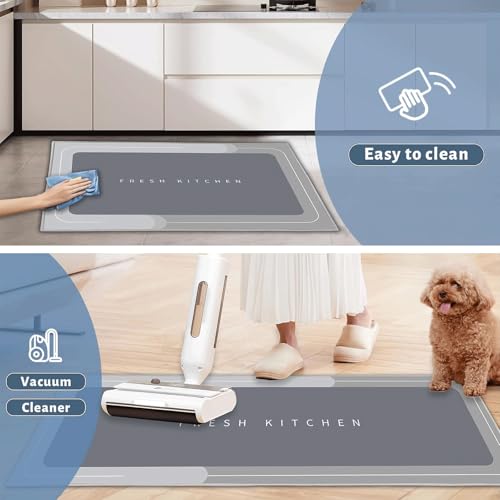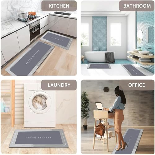 EASYBUYTECH - طقم سجاد مطبخ من ايزي باي تيك مكون من قطعتين غير قابل للانزلاق ومضاد للتعب وقابل للغسل للمطبخ والرواق وغرفة الطعام والمدخل وديكور المنزل والمكتب