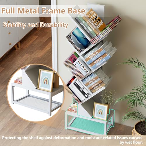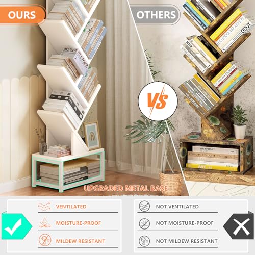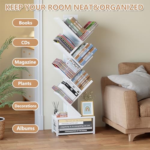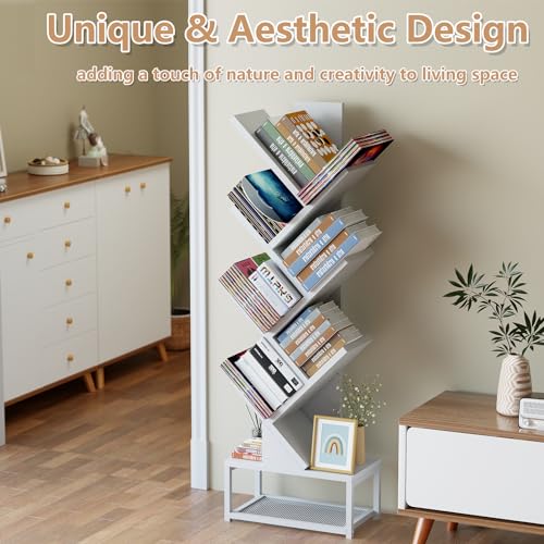 EasyCom - رف كتب بقاعدة معدنية على شكل شجرة بـ 7 طبقات، منظم رف كتب قائم على الأرض للأقراص المضغوطة/الكتب، أرفف كتب لغرفة النوم/غرفة المعيشة/المكتب المنزلي من ايزي كوم، (شجرة - أبيض)