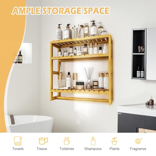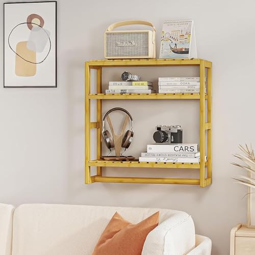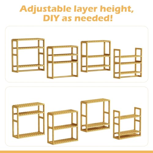 Easyhomie - رف حائط من الخيزران قابل للتعديل من ايزي هومي، رف حمام متعدد الوظائف بثلاث طبقات ورف مطبخ ورف للنباتات ورف كتب ورف عرض لغرفة المعيشة، يثبت على الحائط او قائم بذاته