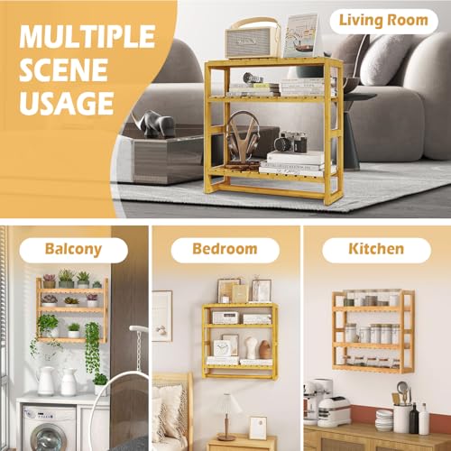 - ️【رف حائط قابل للتعديل من ثلاث طبقات】 كل طبقة من رف الخيزران الخاص بنا قابلة لتعديل الارتفاع، ويمكنك تركيب اللوحة على ارتفاعات مختلفة وفقًا لاحتياجاتك الفعلية. لا يوفر المساحة الخاصة بك فقط ويسمح لك بتنظيم الغرفة بشكل أفضل، ولكن أيضًا ديكور رائع للغرفة. إنه بالتأكيد رف تخزين مثالي يمكنك صنعه بنفسك.