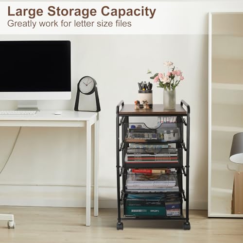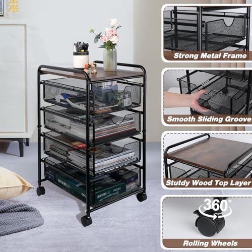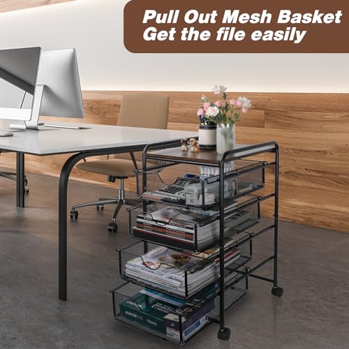 EasyPAG - ايزي باج عربة ملفات دوارة على عجلات مع 4 ادراج تخزين قابلة للسحب اسفل المكتب، خزانة ملفات متحركة للمكتب المنزلي، اسود