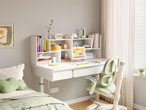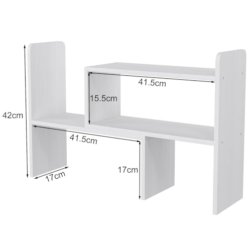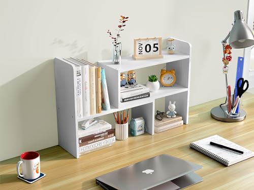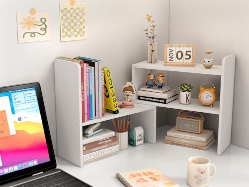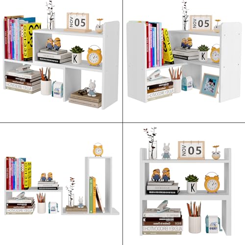 EasyPAG - ايزي باج ارفف مكتب خشبية قابلة للتعديل، رف كتب قائم بذاته، خزانة كتب صغيرة للوازم المكتب، رف عرض منظم للمكتب، ابيض، مغلف