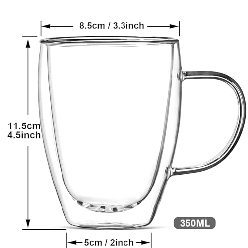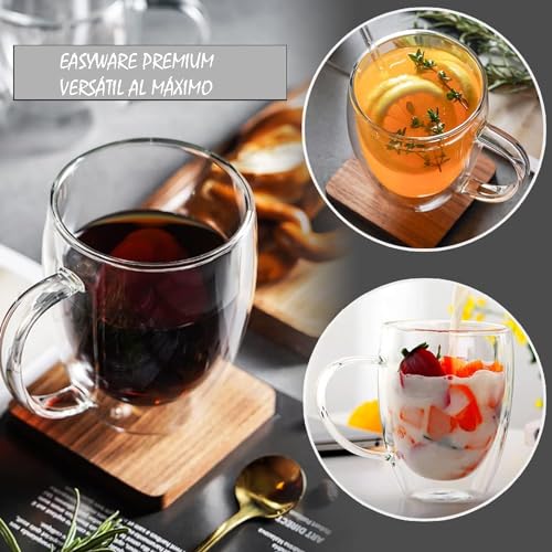 EASYWARE - مجموعة اكواب فاخرة من زجاج البوروسيليكات الحراري بجدار مزدوج من ايزي وير، مناسبة للكابوتشينو والاسبريسو والشاي والقهوة وما الى ذلك (4 × 350 مل)