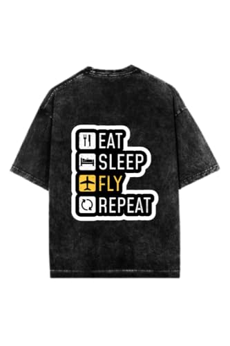 Generic - EAT SLEEP FLY REPEAT travel travellar T-shirt Washed Back 2