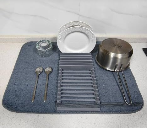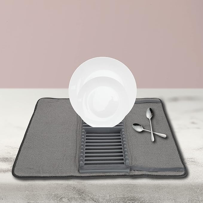 EBASKT - رف تجفيف الاطباق من ايباسكيت مع حامل ادوات مائدة وبساط المايكروفايبر رمادي سيراميك