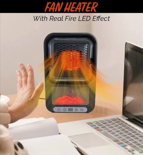 EBASKT - مدفأة بمروحة من ايباسكيت مع تأثير إضاءة LED حقيقية، دوران 180 درجة