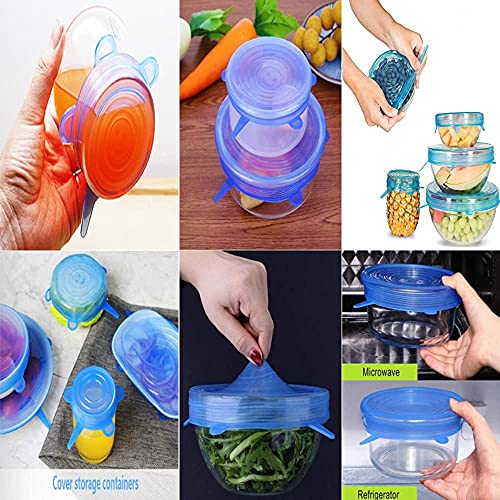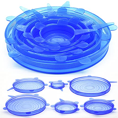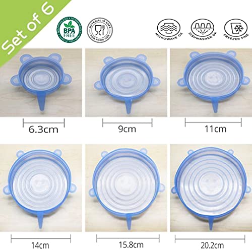 Spaceshoop - مجموعة اغطية من السيليكون المرن بمقاسات وابعاد مختلفة للاطباق العميقة خالية من البيسفينول ا متينة ومحكمة الاغلاق وقابلة لاعادة الاستخدام من ايبا، 6 قطع، ازرق