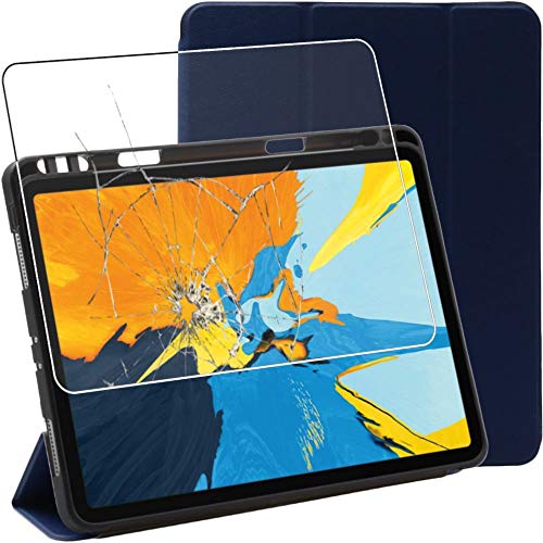 ebestStar - اي بيس ستار - متوافق مع حافظة ايباد برو 11 (2018) غطاء ذكي للنوم/الاستيقاظ التلقائي من جلد البولي يوريثين، ازرق داكن + واقي شاشة من الزجاج المقوى [ايباد: 247.6 × 178.5 × 5.9 ملم، 11 انش]