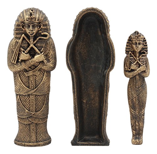Ebros Gift - تابوت ملك فرعون مصري قديم صغير بلمسة نهائية برونزية من ايبروس مع ادخال مومياء تمثال اثري بطول 5.5 انش مجموعة 3 قطع جيفت مادة صمغية، من ايبروس جيفت