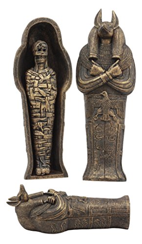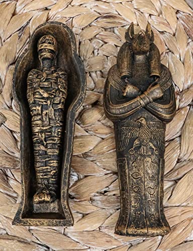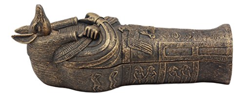 - تابوت أنوبيس المصري المصنوع من الراتنج البرونزي مع تمثال مومياء مصنوع من الراتنج المركب المصمم، مطلي يدويًا ومصقول. قد تختلف درجة اللون