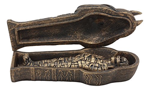 Ebros Gift - ايبروس جيفت صندوق تابوت مصري مع تمثال مومياء بطول 5.25 انش منحوتة أنوبيس مادة صمغية بني