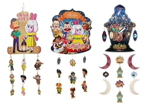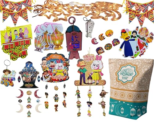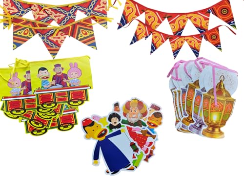 Generic - شنطة زينه رمضان الاقتصادي 12 قطعة – فرع ليد 3.5م، 9 قطع زينة متنوعة عالي الجودة، خشب وكرتون، فانوس مضيء 19سم، شخصيات مجسمة، دلايات، هتحول البيت لأجواء رمضان (شنطة زينة 12 قطعه)