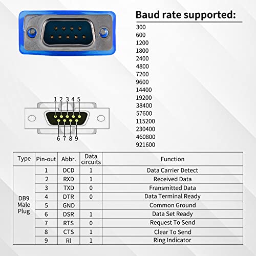 - √ كابل تسلسلي من USB إلى 9 دبابيس، مزايا المنتج: سهل التركيب ولا يحتاج إلى مصدر طاقة خارجي أو برنامج تشغيل فعلي.