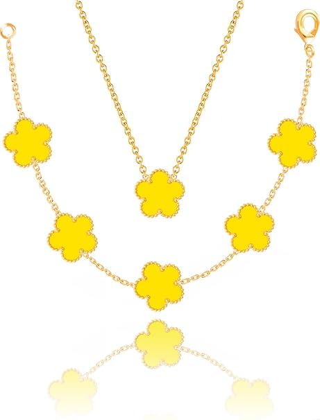 Echden - طقم مجوهرات جالبة للحظ للنساء بتصميم زهرة البرسيم رباعية الأوراق من ايشدين، طقم مكون من سلسلة مرصعة بالماس عيار 18 قيراط وحلقان وسوار، مجوهرات بتصميم زهرة البرسيم، هدية عيد الميلاد للنساء والبنات
