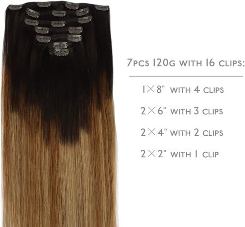 ECIF - وصلات شعر بمشابك من اي سي اي اف، لون بني فاتح، بطول 35.5 سم، ووزن 120 جرام، عبوة من 7 قطع