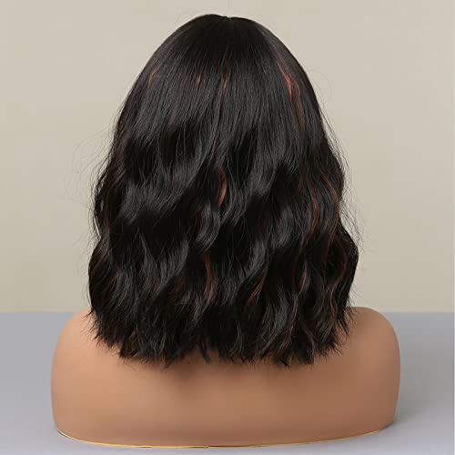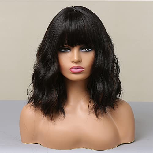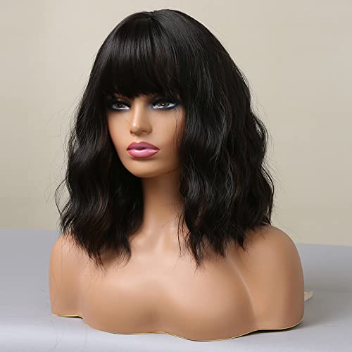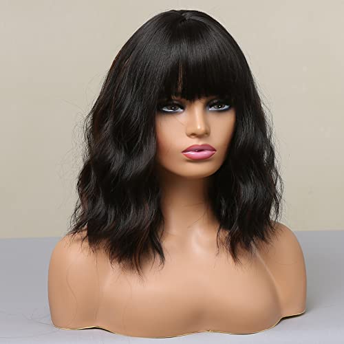 ECIF - باروكة للنساء من هير كيوب، باروكة بطول الكتف مع قصة، بلون أسود بني
