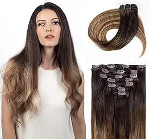 ECIF - وصلات شعر بمشبك، وصلات شعر بشري حقيقي، 100% شعر بشري ريمي طبيعي بنسيج مزدوج، حجم وصلة شعر كاملة الرأس غير مرئية يمكنك تركيبها بنفسك، 7 قطع بوزن 120 جم من ايسيف (ميكس بني T2/6/18 50 سم)
