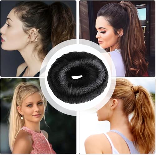 ECIF - صانع كعكة الشعر الدونت، أداة لتشكيل كعكة الشعر من الشعر الصناعي للنساء والبنات واكسسوار سهل لعمل تسريحة الشينيون، أسود، 15 جم من اي سي اي اف
