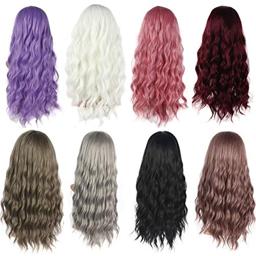 ECIF - باروكة شعر مموج من ايسيف مع غرة، شعر مستعار صناعي بالوان بني وردي رمادي ارجواني ابيض مقاومة للحرارة، باروكات للنساء صناعية (اللون: 7، طول ممتد: 66 سم)