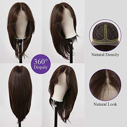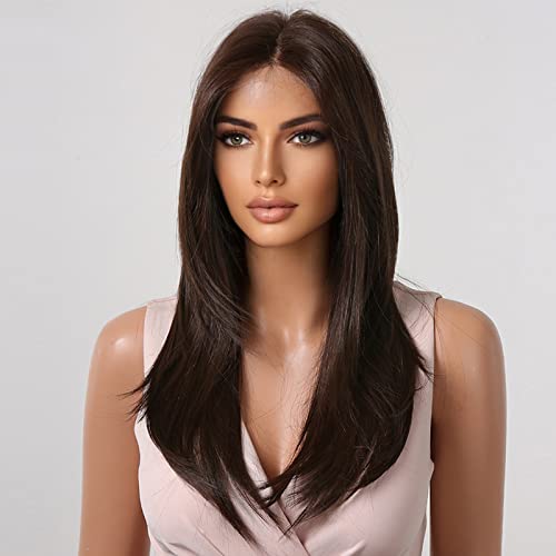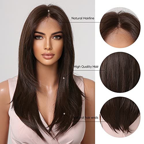 ECIF - باروكة بشعر بني طويل بدانتيل أمامي بتصفيفة مفروقة من المنتصف بمظهر طبيعي للاستخدام اليومي من اي سي اي اف