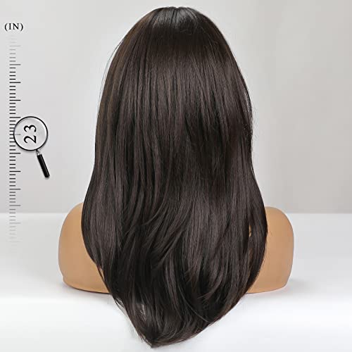 ECIF - باروكة شعر صناعي طويل بطبقات للنساء من ايسيف - بني