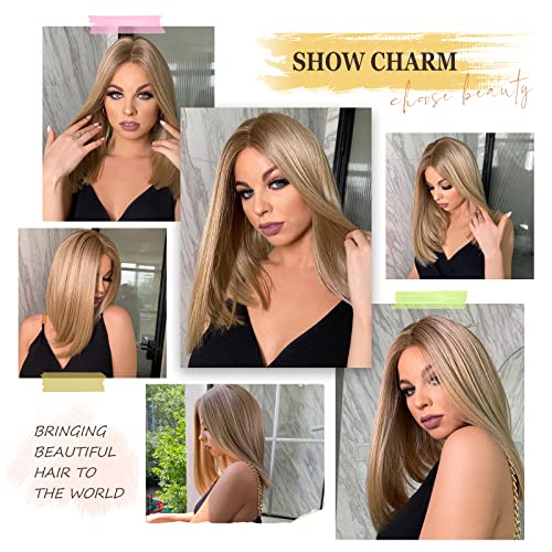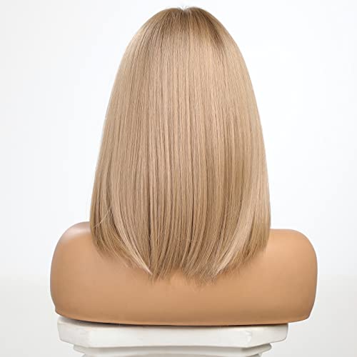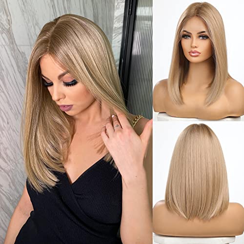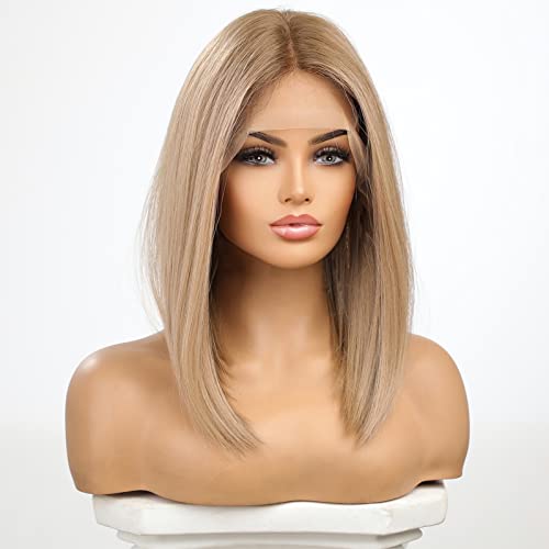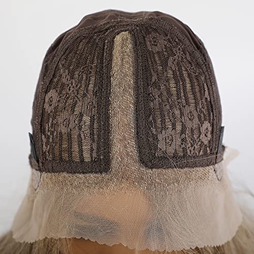 ECIF - باروكة شعر بمفرق وسطي ودانتيل أمامي بتدرج لوني، شعر مفرود بطول للكتف، باروكة شعر أشقر بخط شعر طبيعي من ايسيف، 45.7 سم، شعر أشقر رمادي