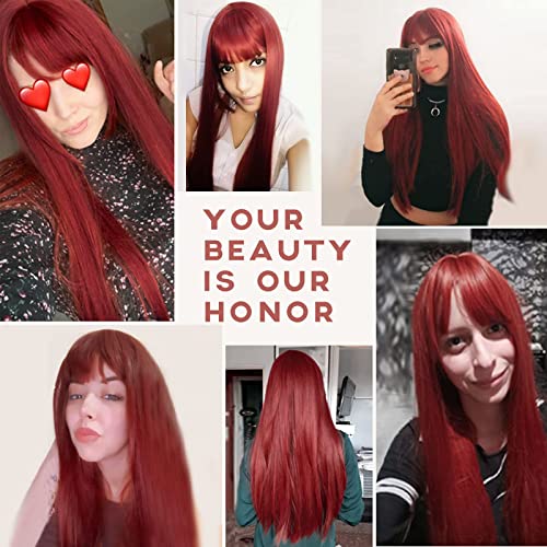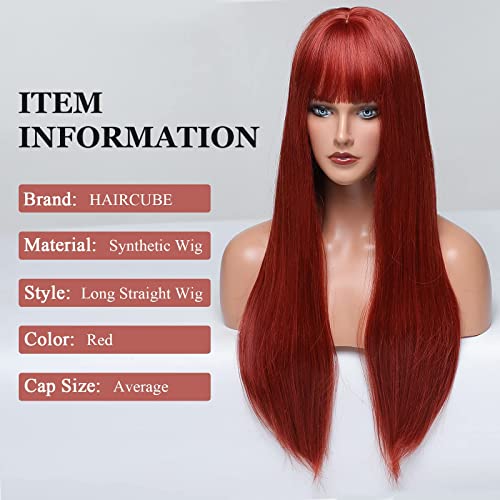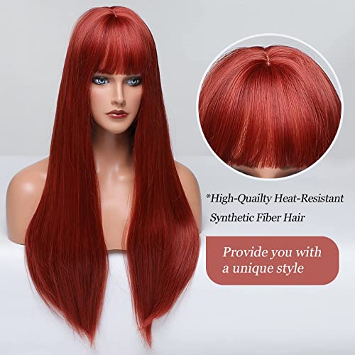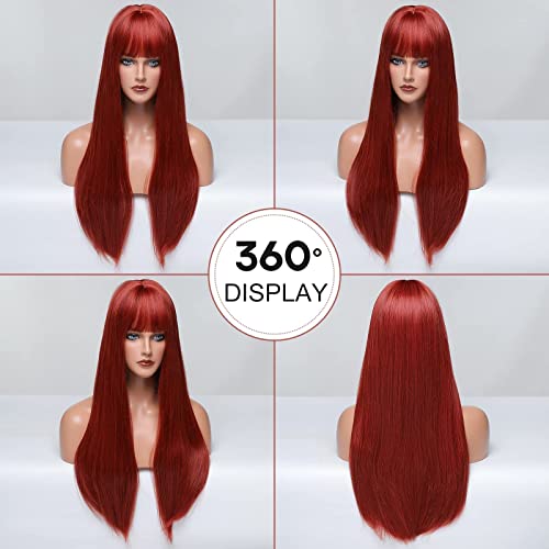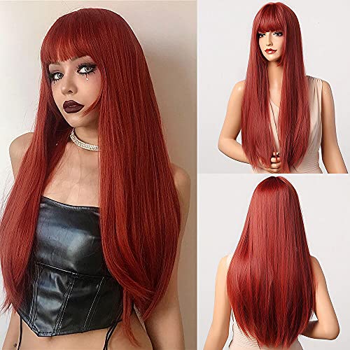 ECIF - باروكة طويلة مفرودة وصناعية مع غرة هدية للنساء، مصنوعة من ألياف تتحمل درجات الحرارة العالية من ايسيف، أحمر