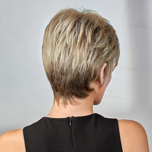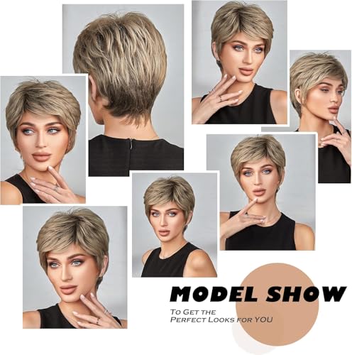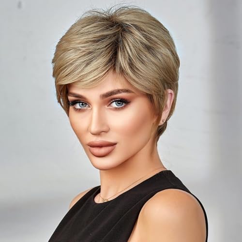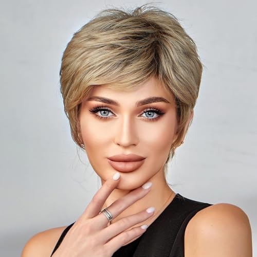 ECIF - شعر مستعار صناعي قصير بلون اشقر غامق مع غرة للنساء من اي سي اي اف