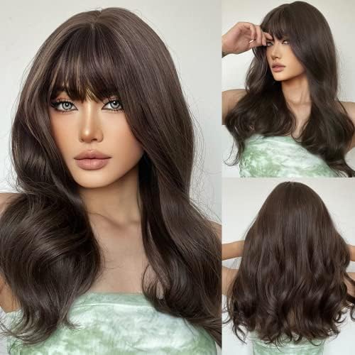 ECIF - باروكات شعر مستعار صناعي عصري للنساء باللون البني الفاتح بطول الكتف مع غرة وشعر مموج طبيعي مناسب للحفلات التنكرية والاستخدام اليومي للسيدات من ايسيف