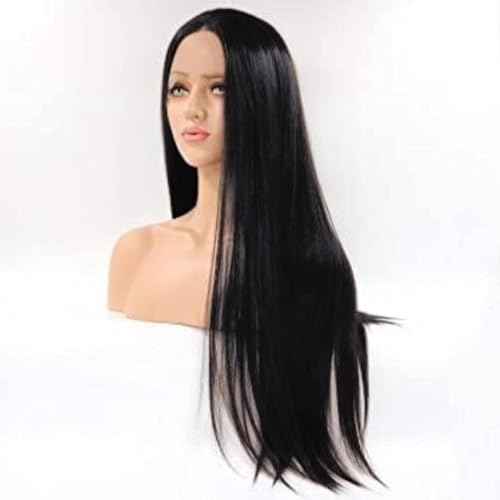 ECIF - شعر مستعار صناعي طويل مفرود أسود قابل للغسل من اي سي اي اف