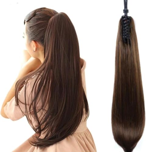 ECIF - شعر صناعي مفرود طويل بني على شكل ذيل حصان قابل للغسل والحرارة من اي سي اي اف