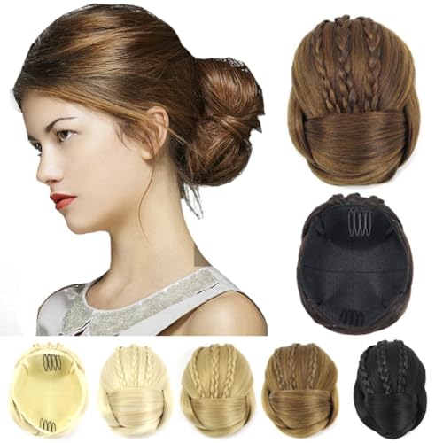 ECIF - مشبك كعكة شعر مضفرة صناعية، قطعة شعر بمشبك، ألياف تتحمل درجات الحرارة العالية سهلة الارتداء بمظهر طبيعي للنساء والبنات من ايسيف (#8، راستا)