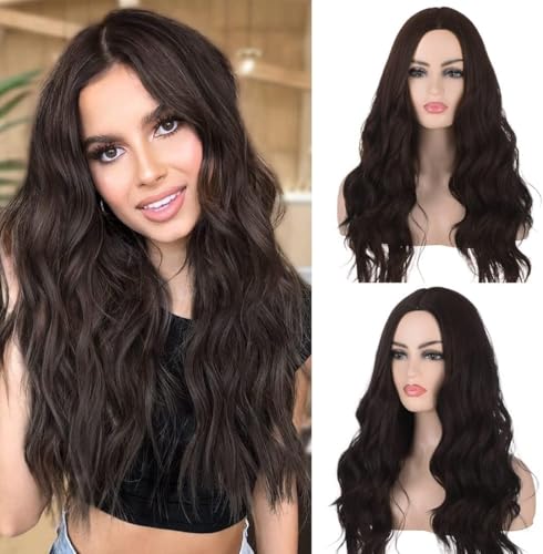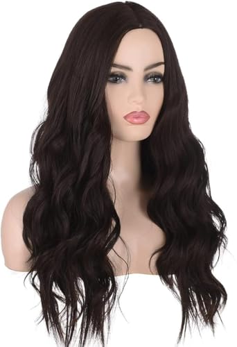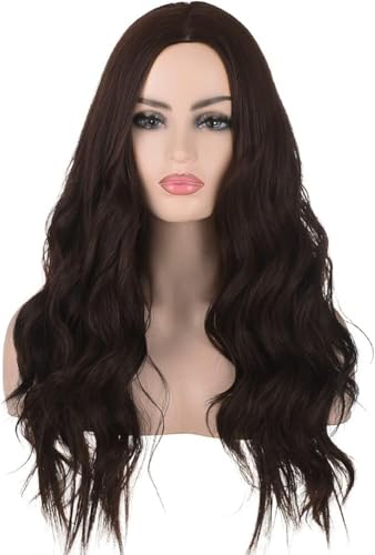 - هذا شعر مستعار بني داكن للنساء، شعر مستعار طويل مجعد مموج للنساء والبنات، شعر مستعار صناعي مقاوم للحرارة