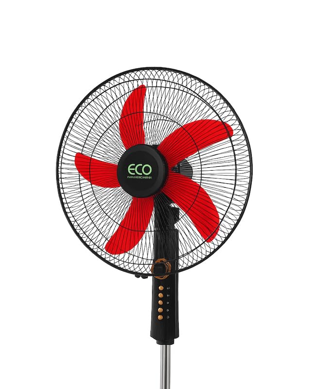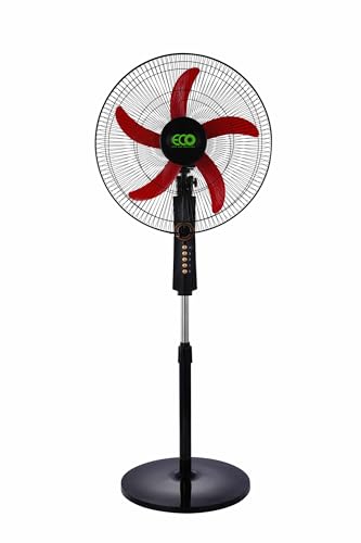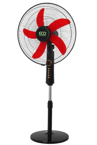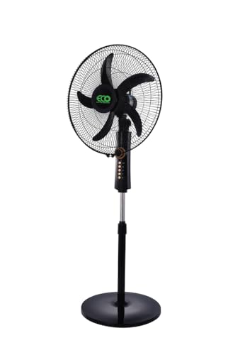 Generic - مروحة عمودية 40 سم مع مؤقت من ايكو اير، 4 سرعات، حامل ارتفاع قابل للتعديل، 5 شفرات، مروحة تبريد كهربائية متذبذبة، أسود