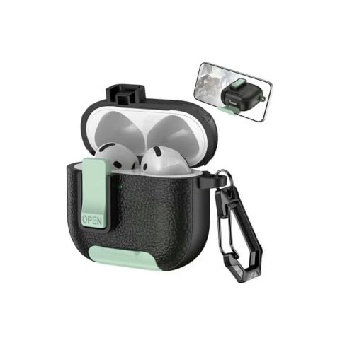 ecosystem - حافظة حماية سيليكون بملمس جلدي مع حامل موبايل بتصميم قفل آمن لسماعات ايربودز 4 إصدار 2024 من ايكو (لون أسود ومينت جرين)