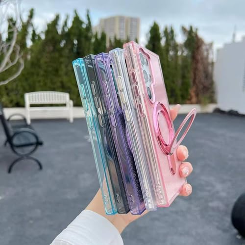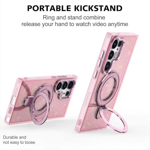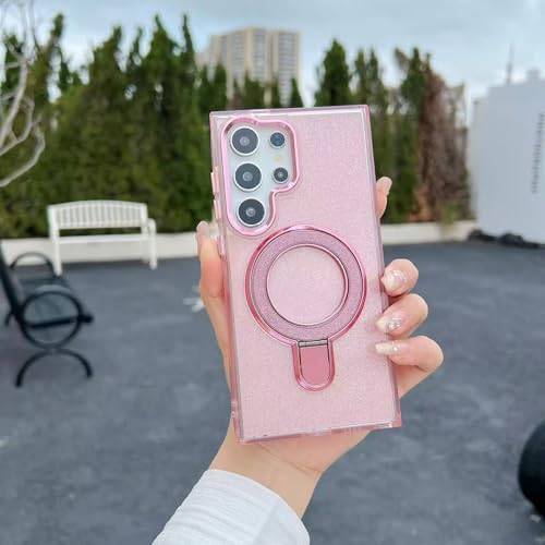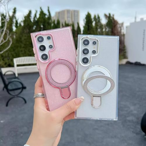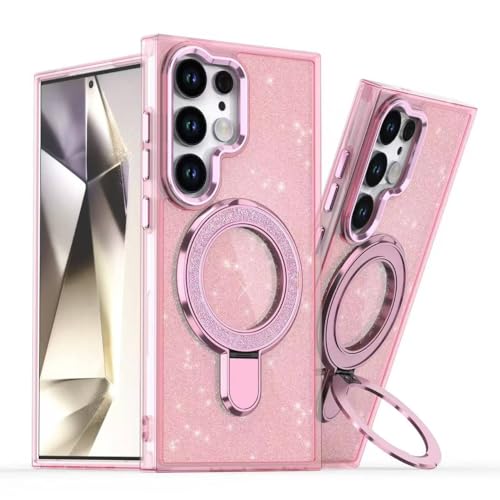 ecosystem - جراب مغناطيسي لامع متوافق مع موبايل سامسونج جالاكسي S25 الترا، جراب شفاف من البولي يوريثين الحراري مرصع بأحجار الراين اللامعة، غطاء حلقي للشاحن اللاسلكي للنساء والفتيات من ايكو