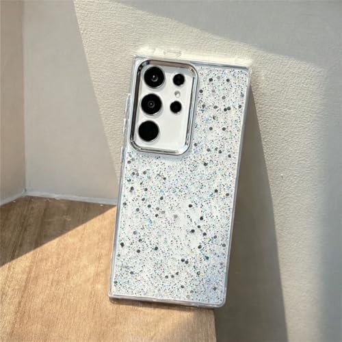 ecosystem - جراب ايكو لسامسونج S24 الترا، شفاف ولامع وبراق، بإطار ممتص للصدمات ناعم من البولي يوريثين المقاوم للحرارة، جراب خلفي صلب للنساء والفتيات، جراب حماية شفاف (فضي لامع)