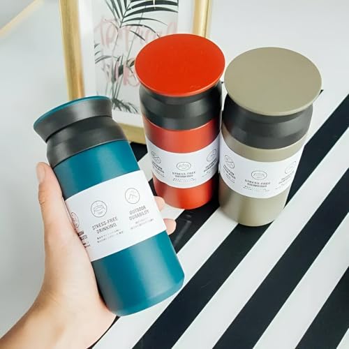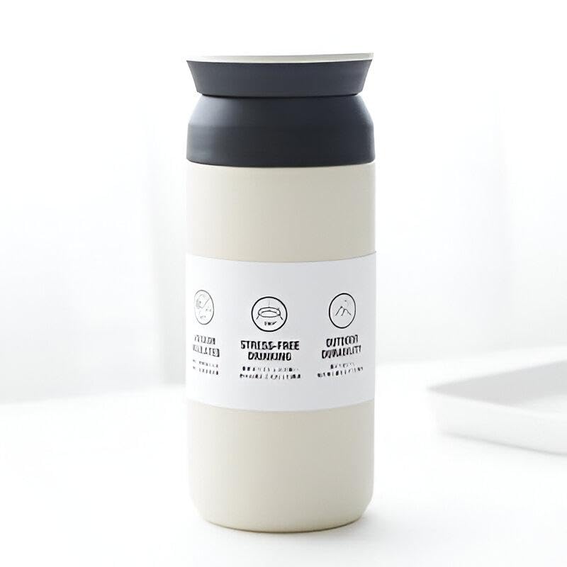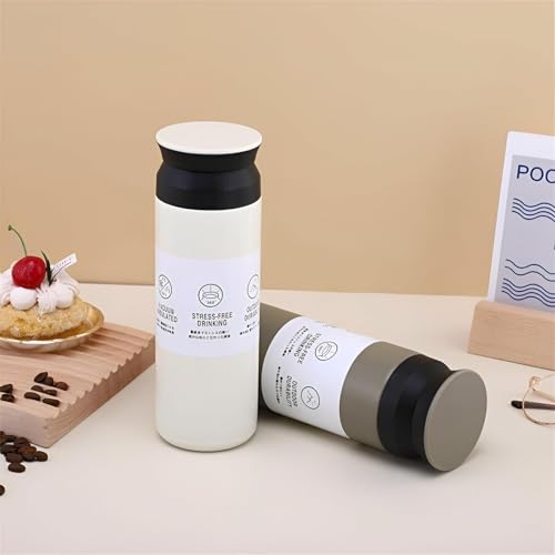 Generic - زجاجة مياه من الفولاذ المقاوم للصدأ مع عزل فراغي، تصميم صديق للبيئة، فلتر قابل للإزالة، غطاء لولبي محكم، تحافظ على الحرارة أو البرودة لمدة 12 ساعة، مناسبة للاستخدام اليومي من ايكو تشل، 350 مل، بيج