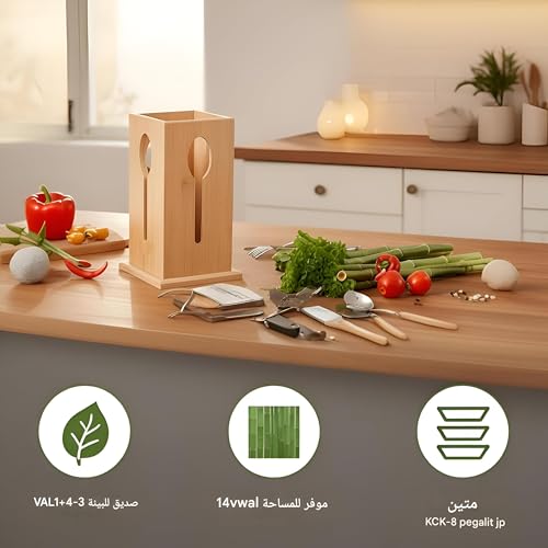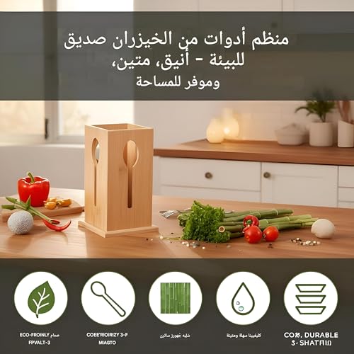 Generic - حاوية صديقة للبيئة - حامل أدوات مائدة من الخيزران الطبيعي يتميز بحجرات متينة، مصنوع لوضع أواني أنيق، مما يضمن تخزين مستدام للمطبخ مثالي للمنازل والنزهات الخارجية